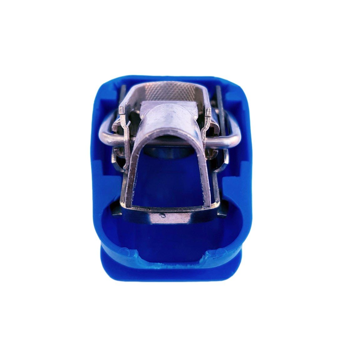 It is Quick release battery terminal clamp to lock on Negative battery pole. Product is OEM type where cable schould be Crimped down with crimping tool (sold separately) for cables diameter from 40 to 70 mm. Produced from Polypropylene (Blue color cover), copper alloy 12 μm Tin Plated and stainless steel 316. This product is mostly used by OEM manufacturers in Automotive industry for connecting Truck, Bus, Agricultural and Construction vehicles batteries, electric car batteries.