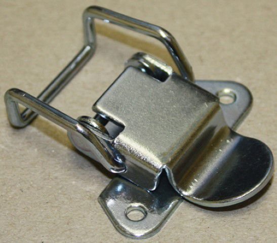 It is a Light duty Draw latch with bent wire link loop and wide base plate. Manufactured from zinc plated and clear passivated Steel for increased corrosion resistance. Base plate with 3,5 mm straight holes for riveting to the surface.