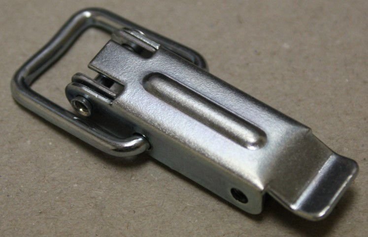 This is a Light duty Draw latch with wire link loop. Made from zinc plated and clear passivated Steel which provides great corrosion resistance properties. Used as cabinet latch and for countless other purposes. Base plate with straight holes dedicated for riveting.