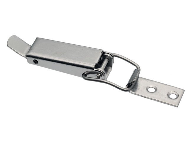 This is Stainless steel Draw latch suited for light duty demanding environments because of superior Stainless steel corrosion resistance properties. Base plate has 3,2 mm countersunk holes for screw down to panels. Catch plate not included.