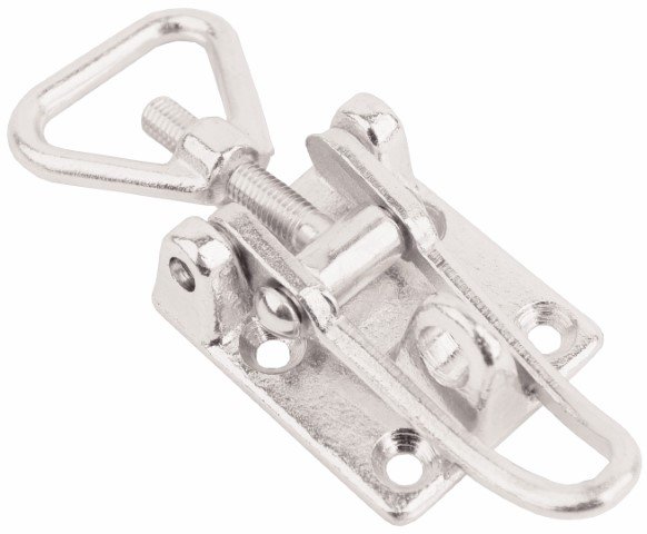 Chrome Heavy duty Toggle latch with adjustable length triangle screw loop, made from Chrome plated Drop Forged Steel – unique combination for these type of products. Used by interior designers and creating unique furniture. Base plate with 80 degrees countersunk holes suitable for screw down or riveting to the surface application. Lockable with paddlock to avoid unauthorized access. We are happy to offer a Lifetime Warranty for this extra durable product. Warranty covers defects in material and workmanship and there is no time limit to make a claim. Please note MOQ 100 pcs.