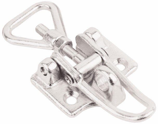 Chrome Heavy duty Toggle latch with adjustable length triangle screw loop. Made from Chrome plated Drop Forged Steel which makes it unique product in the latch market. Might be used as a furniture or interior decorative element. Base plate with countersunk holes suitable for screw on or riveting to the surface applications. Padlocable for increased security. Latch is eligible for repair or replacement free of charge over it’s lifetime. If this product breaks down please return for exchange. Please note MOQ 100 pcs.