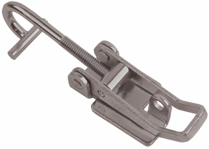 Adjustable latch light duty Over centre type. Produced from Natural Steel. Base plate without holes- suitable for welding to the surface applications. Lockable latch helps prevent unauthorized opening. Bent T screw are used when catch plate is attached over the angle.