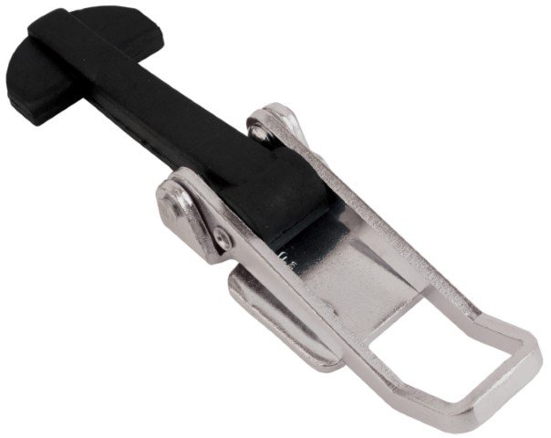 Bonnet latch made from Electropolished 316 Stainless steel base plate and rubber for medium duty applications. Rubber loop construction provides flexibility and resistance to vibrations. Frequently used on custom build or special purpose vehicles, race cars. Base plate without holes suitable for welding applications.