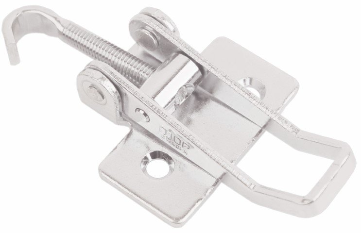Medium duty adjustable length Tension latch. Produced from Chrome plated Steel for shiny look. Product used in automotive, industrial machinery industries. Base plate with countersunk holes suitable for screw down or riveting to the surface. Flat Hook screw are used where space is limited and catch plate is not needed- when latching to hole or panel edge itself. Please note MOQ 100 pcs.