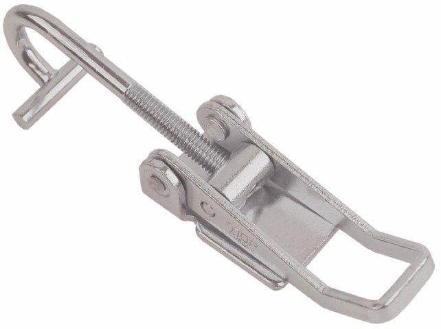 Medium duty adjustable length latch. Manufactured from Electropolished 316 Stainless steel which is heat resistant and resist corrosion to chlorides. Narrow space saving Base plate without holes- suitable for welding applications. Bent T screw frequently used when catch plate is attached at an angle to the latch surface.