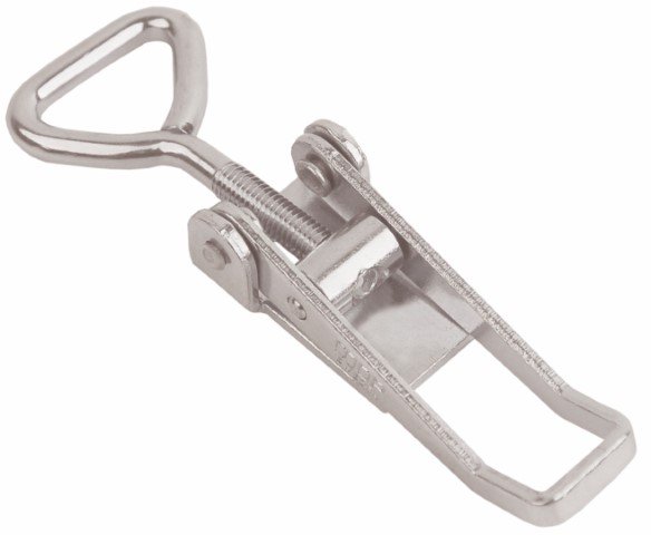 Stainless steel Toggle latch Light duty adjustable length with triangle screw loop. Made from Electropolished 316 Stainless steel which provides great resistance to chlorides, bromides, sulfuric acid at high temperatures. Narrow Base plate without holes suitable for tight spaces and for welding applications.