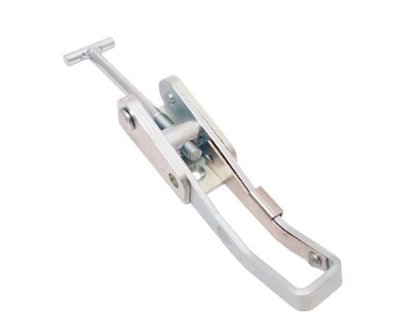 Ultra strong Heavy duty adjustable length Toggle latch with T screw. Produced from Electropolished 316 Stainless steel which makes it perfect choice where corrosion resistance to chlorides needed. Base plate with countersunk holes suitable for screw down or riveting. Locable with additional feature safety catch which protects against unauthorized and unintentional opening.